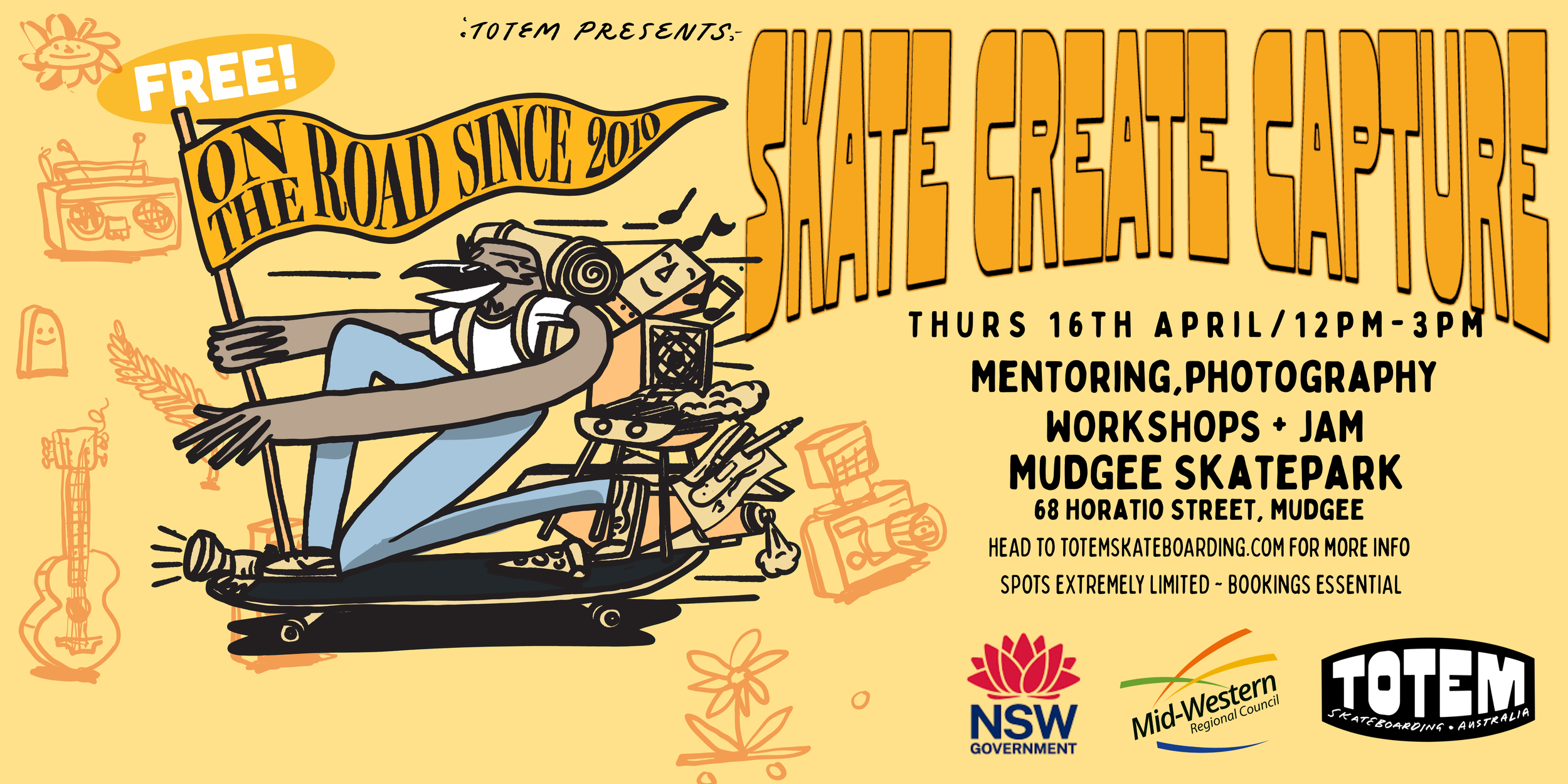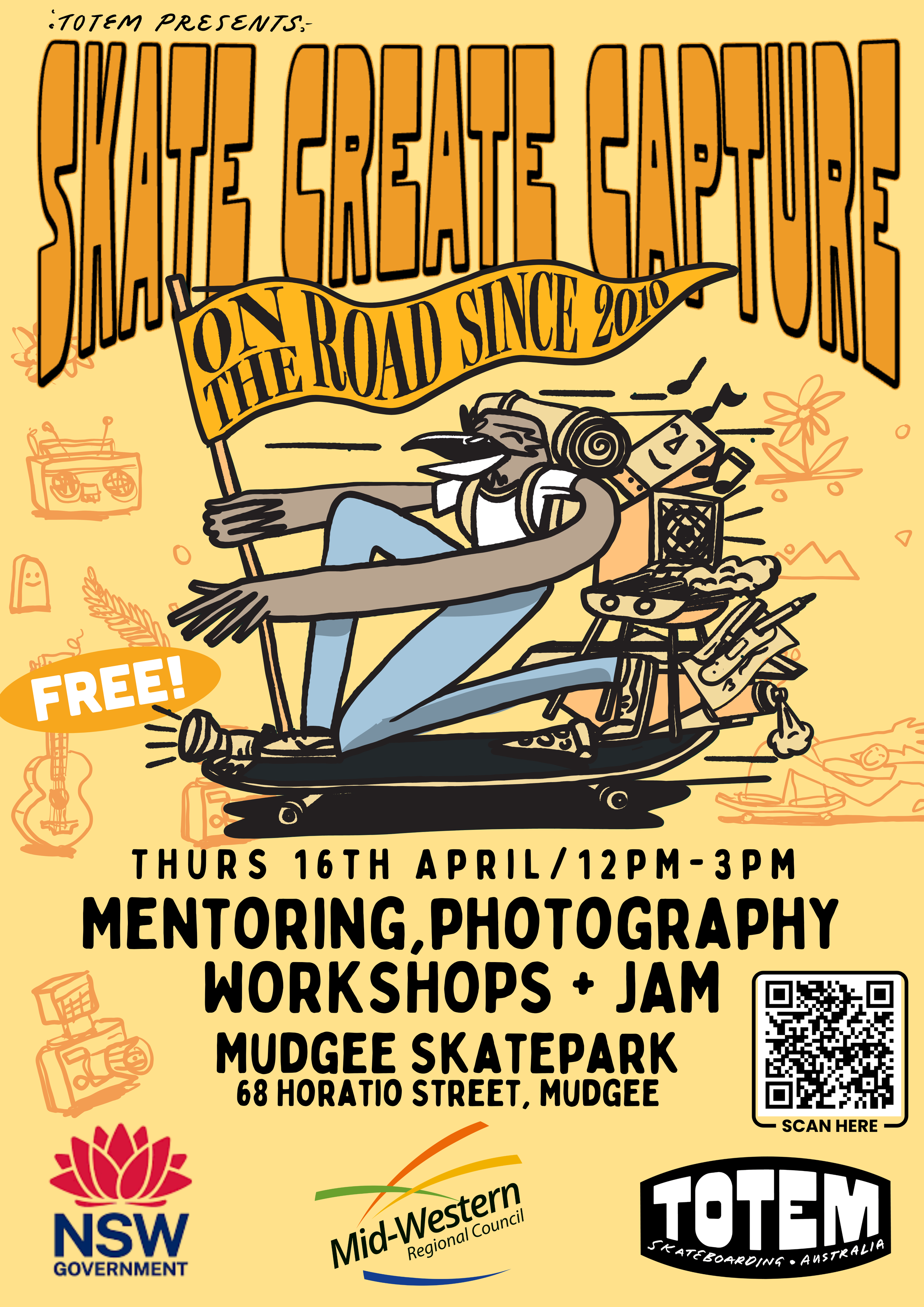 Totem Skateboarding is proud to partner with Mid-Western Regional Council to deliver an exciting youth workshop that brings together skateboarding, creativity and storytelling.