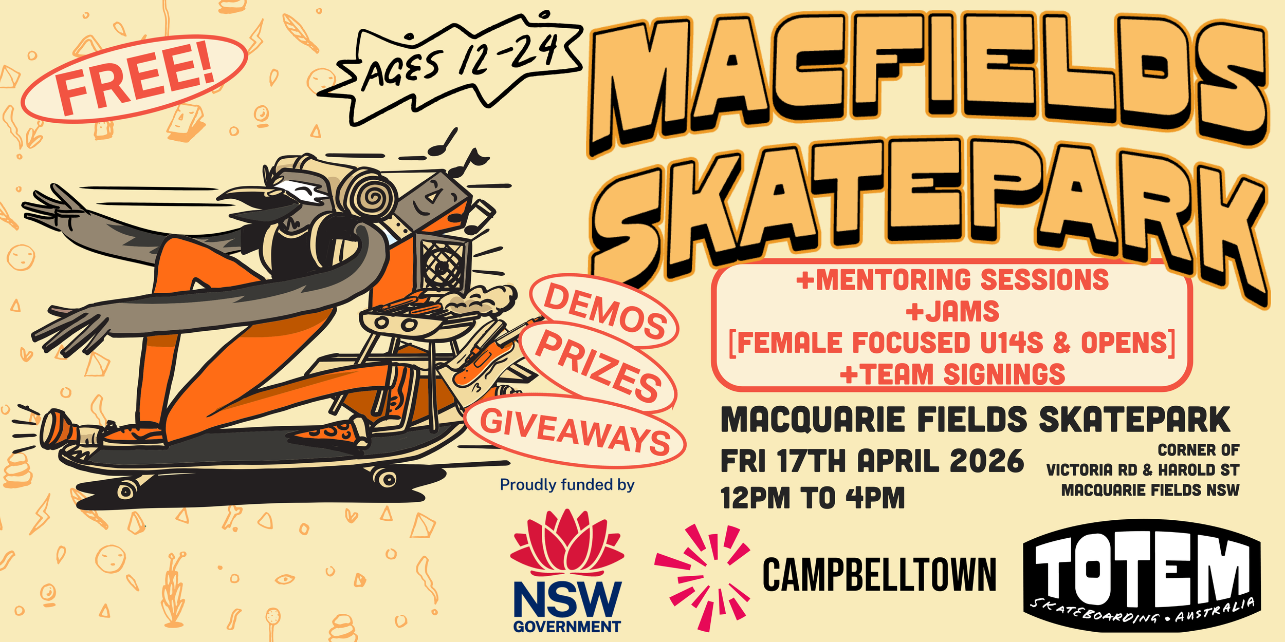 Join Totem Skateboarding and some of Australia’s top skateboarders for a FREE Youth Week 2026 skate event, proudly supported by Campbelltown City Council.