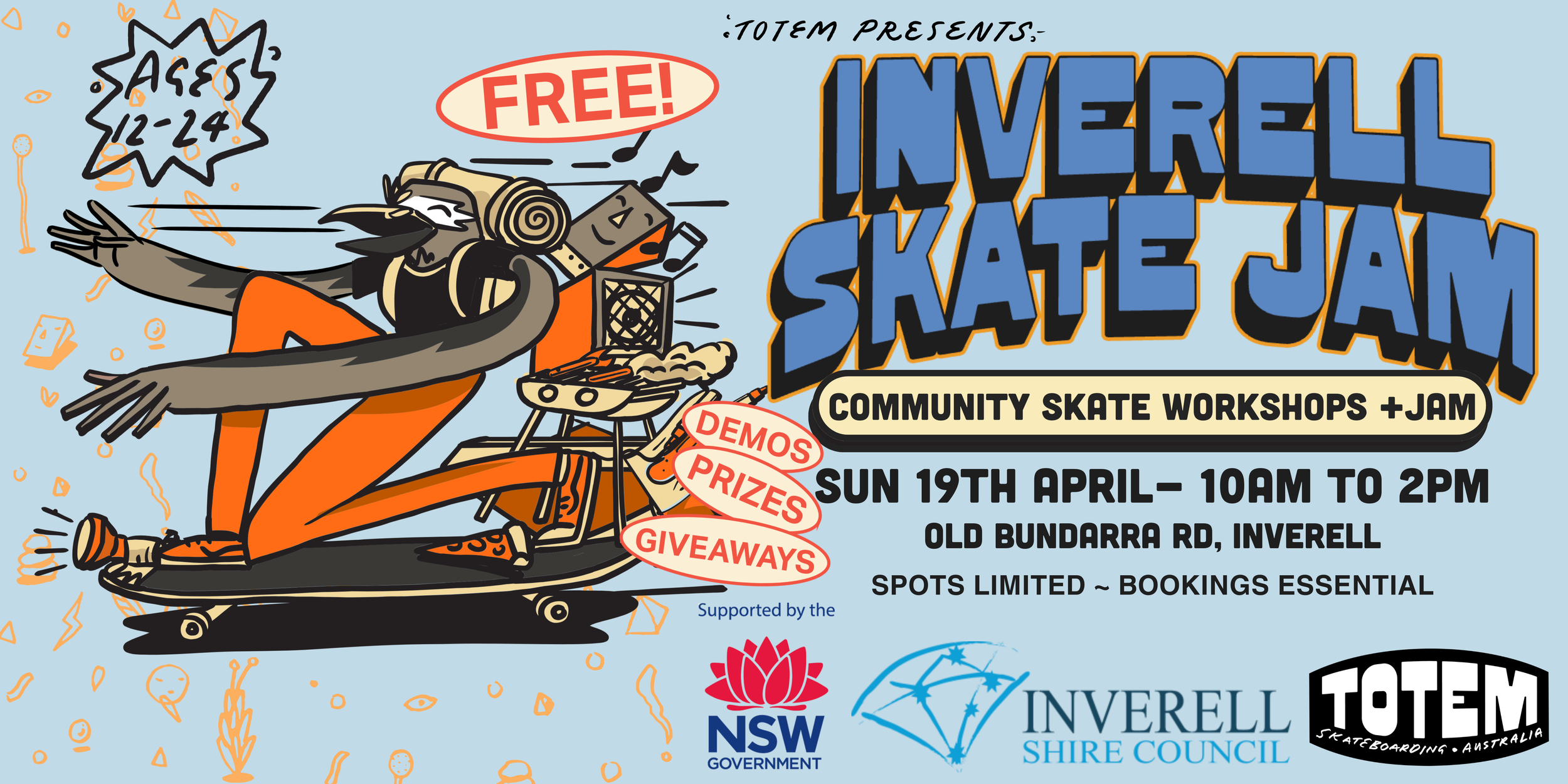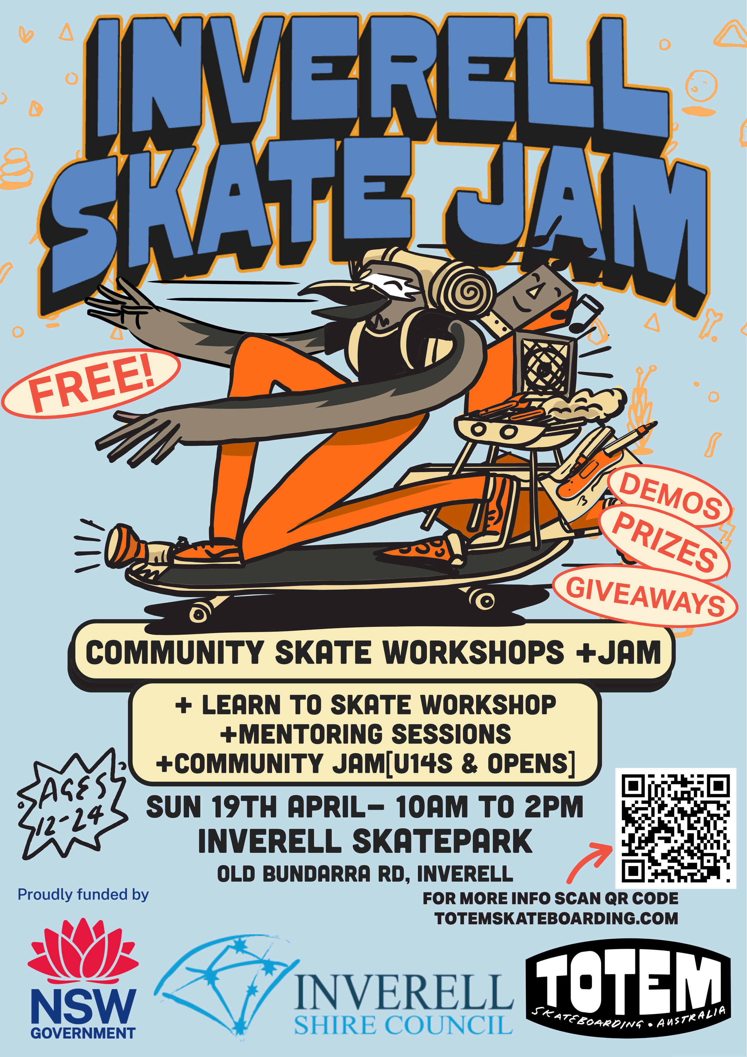 Come along to the newly added pump track at Inverell Skatepark to attend our FREE Community Skate Workshop thanks to Inverell Shire Council.