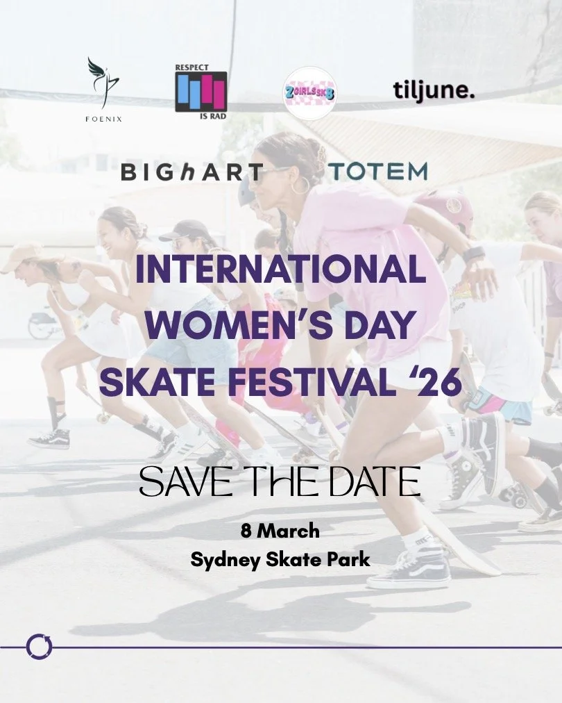 Foenix, Respect Is Rad, 2GirlsSk8, Tiljune, Big hART and Totem are working behind the scenes to bring you our second annual International Women’s Day Skate Festival event on 8 March to celebrate women and girls in Skateboarding and to raise funds for high-impact charities – Big hART, Skateistan and Women and Girls Emergency Centre.