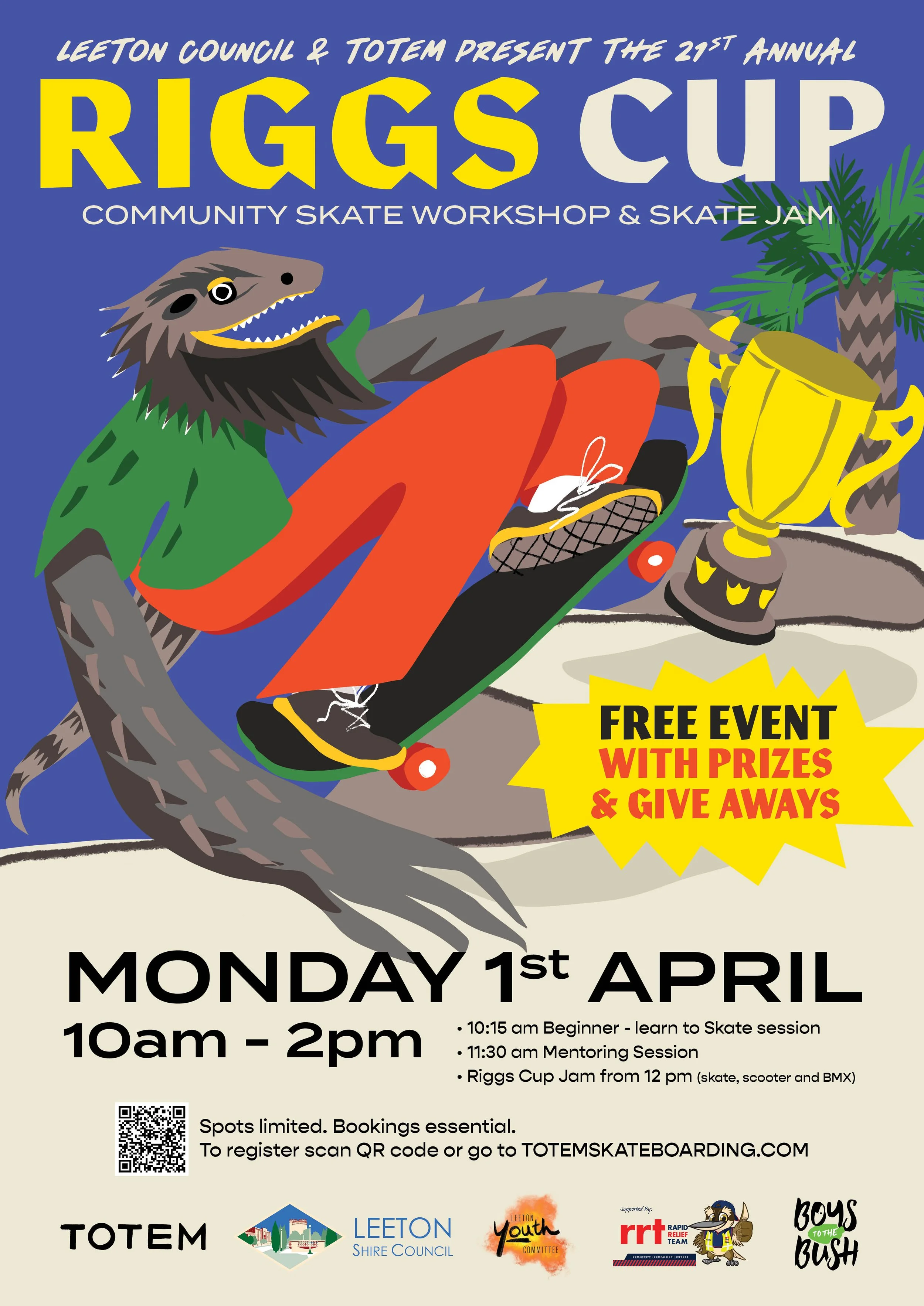 The RIGGS Cup has been a big part of our personal story here at Totem and the Leeton/Griffth community for the last 20 years. Richard O’Hara(Riggs) was by far one of the best skaters in the area when we were growing up. Riggs was one of those guys who was frighteningly great at everything he tried. Unfortunately, Richie took his own life at the peak of his skating and Basketball career. Having this happen to such an inspirational young person hit the community hard, so we decided to celebrate Richard’s life in a yearly Skate comp and named it the RIGGS Cup.